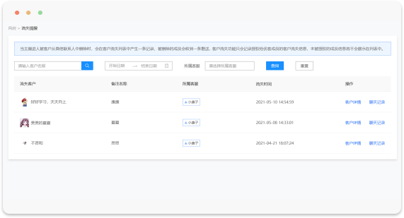 一线员工可第一时间掌握客户流失动态,及时跟进,及时挽回。