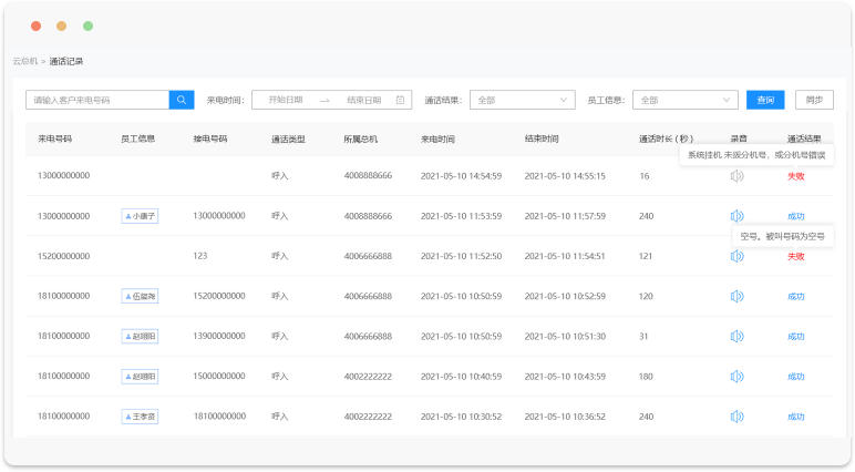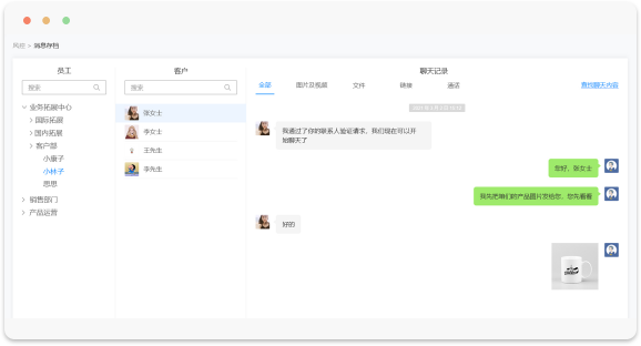 聊天记录、通话录音云端自动保存,保障沟通过程透明化,沟通结果可复盘。