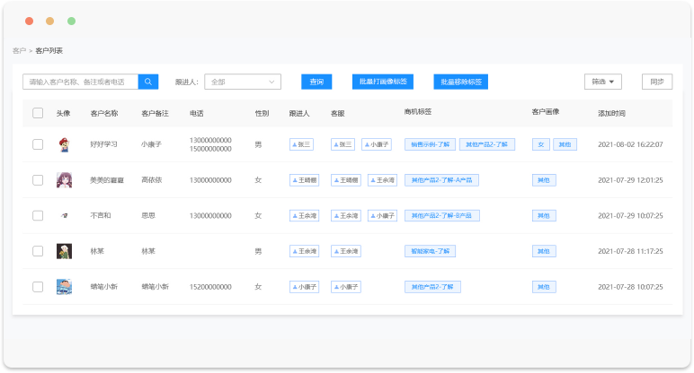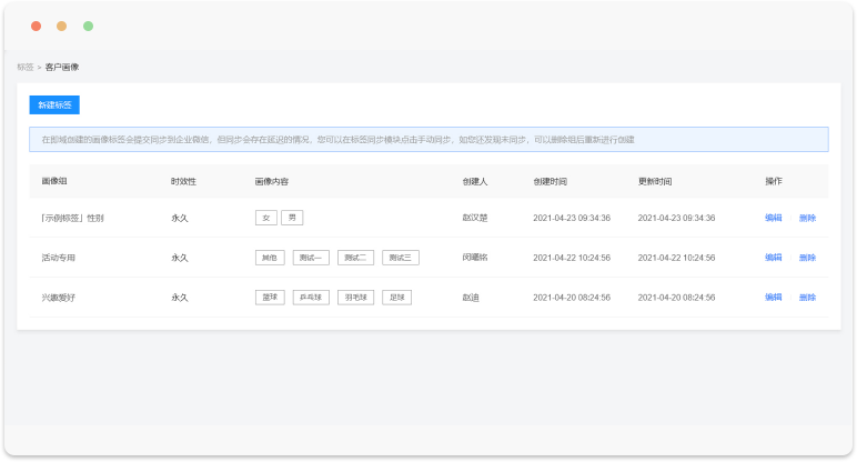 自定义创建标签体系,批量操作,多维构建客户画像。