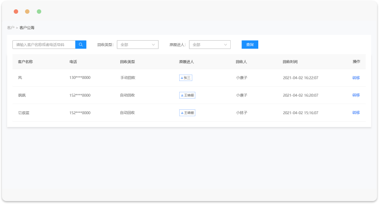 企业客户员工个人带不走,有效沉淀为企业资产,多种线索回收再分配机制二次激活客户价值。