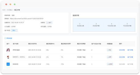 支持添加并发送图片、文章、文件等丰富的内容形式,全方位记录阅读行为,精准捕捉客户需求。
