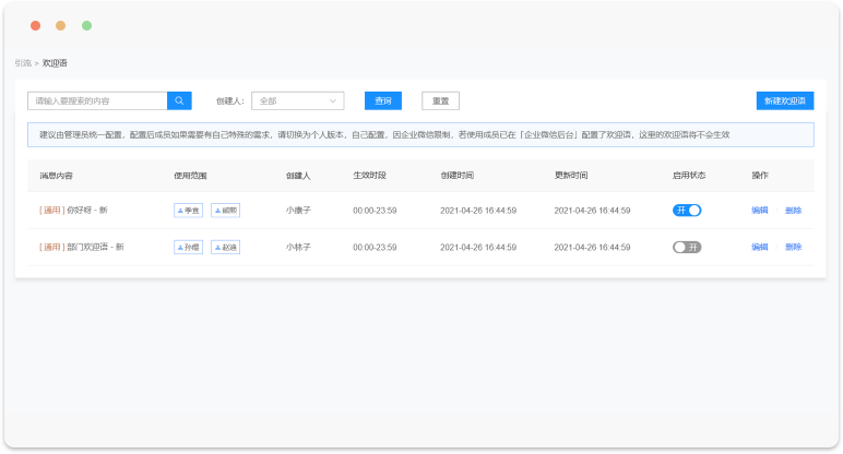 个性化欢迎语自动打招呼,第一时间与客户建立联系。