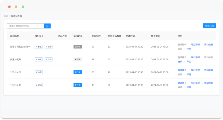 定制化活动引导客户分享专属海报,好友助力高效裂变,精准获取客户,扩大私域流量池。